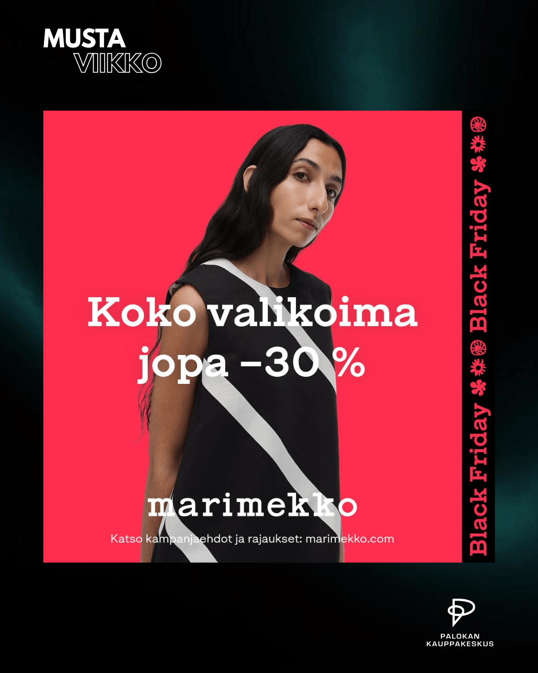 Musta viikko on käynnissä Palokan kauppakeskuksessa. Musta viikko ja tutummin black friday on täydellinen hetki tehdä edullisia hankintoja, löytää joululahjoja etukäteen tai piristää itseäsi pienellä ostoksella. Kauppakeskuksemme liikkeet ovat koonneet viikon ajaksi parhaat tarjouksensa. Selaa alta liikkeiden Black Friday -tarjoukset ja tule tekemään omat löytösi Palokan kauppakeskukseen!